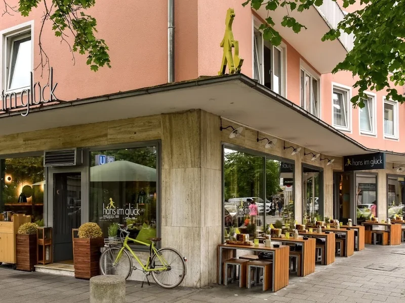 HANS IM GLÜCK in München Nymphenburg befindet sich in der Nymphenburger Str. 69, 80335 München, und bietet eine einladende Atmosphäre, die zum Verweilen einlädt. Das Restaurant ist bekannt für seine köstlichen Burger, die aus frischen, hochwertigen Zutaten zubereitet werden, sowie für eine vielfältige Auswahl an vegetarischen und veganen Optionen. Die stilvolle Einrichtung mit natürlichen Materialien schafft ein modernes, aber gemütliches Ambiente. In unmittelbarer Nähe befinden sich Sehenswürdigkeiten wie das Schloss Nymphenburg und der Botanische Garten, die einen Besuch des Restaurants ideal ergänzen. HANS IM GLÜCK ist somit der perfekte Ort, um nach einem Tag voller Erkundungen zu entspannen und zu genießen.